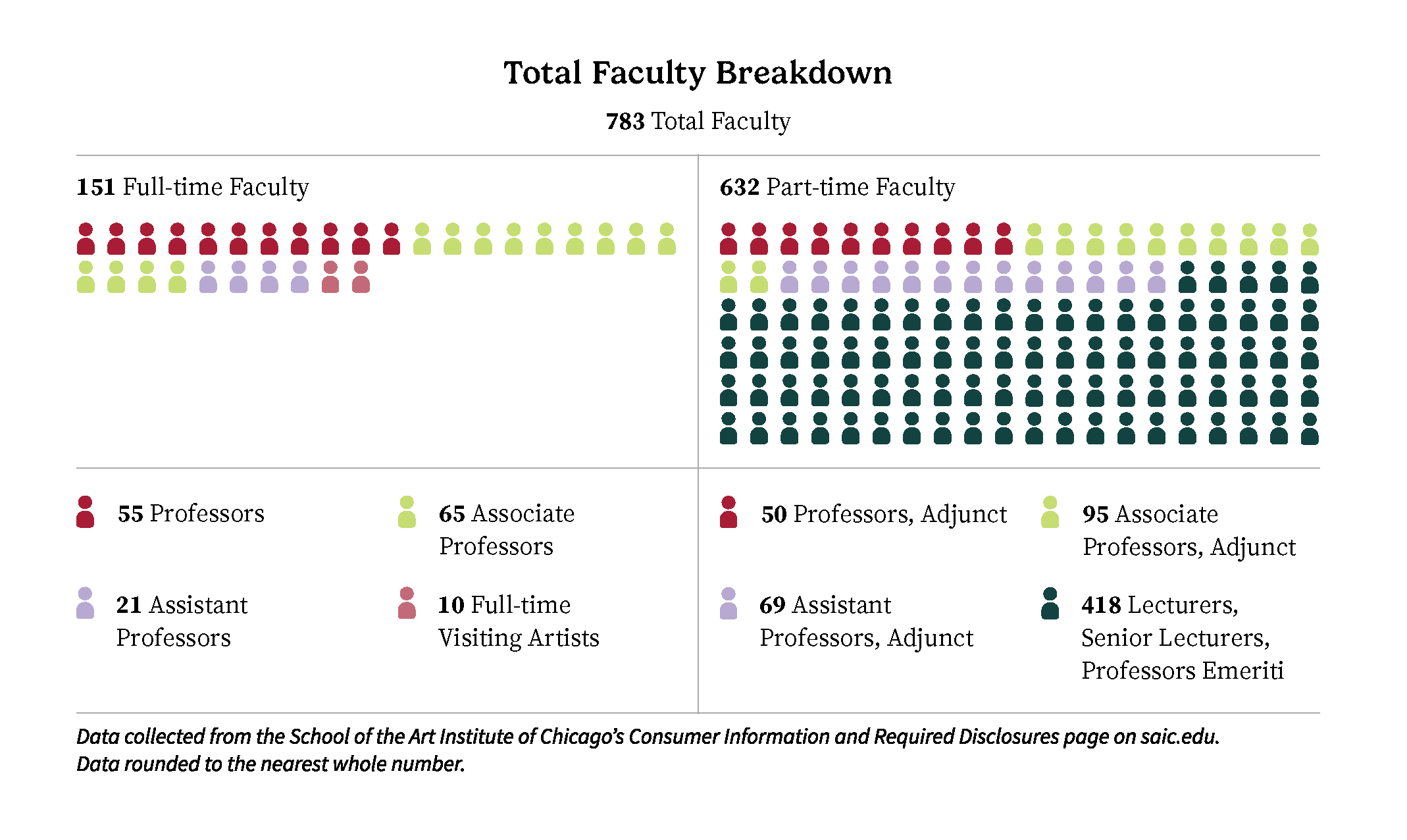 Of the 783 total faculty at SAIC, 151 are full-time — fewer than 20%.