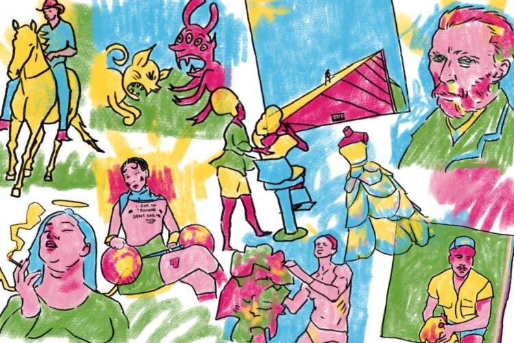 David Bowie once called Claude Cahun a “cross-dressing Man Ray with surrealist tendencies.” Frankly, I find Cahun infinitely more moving than her contemporary Man Ray. Cahun is a Jewish French artist who, along with her often sidelined but equally artistically formidable life partner Marcel Moore, created heartwrenching, funny, deep, and photographs of self-reflection that transcend time. Together, their work was often culturally and politically charged, especially given the rampant rise of fascism in mid-20th-century Europe. Cahun’s self-portraits play with gender, androgyny, and sexuality. In the self-portrait series she made with Moore, “I Am In Training Don’t Kiss Me” (1927), Cahun has on cabaret makeup with hearts on her face, her hair is slicked back in an Oscar Wilde-esque style; her tight white shirt has the titular text written across her chest. This photo series drips with androgyny, and Cahun’s expressions sit somewhere between invitation and damnation. There is great power in the works of art that stand as testaments to queer joy and identities in the face of historical oppression.