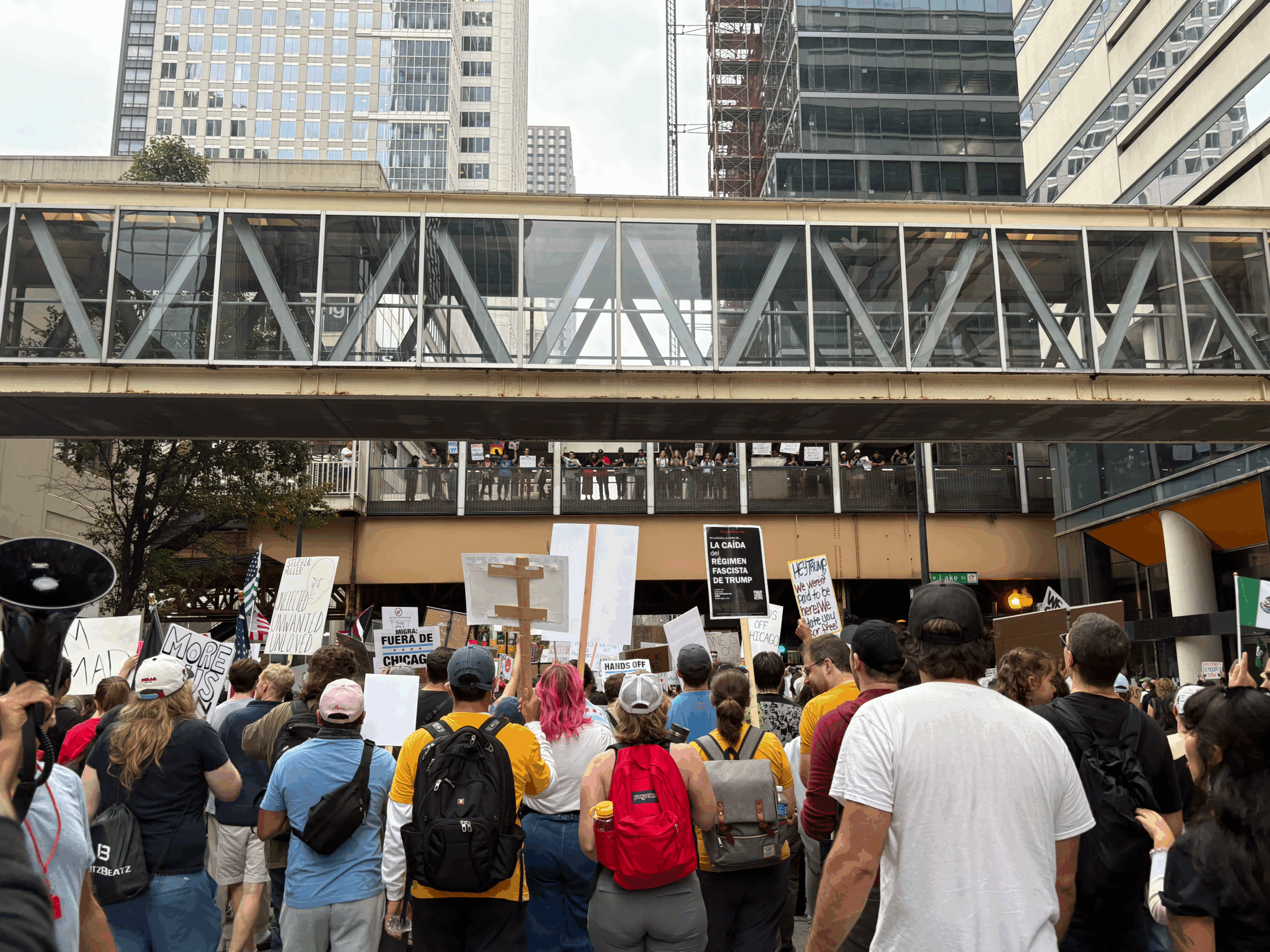 On Saturday, Oct. 18, demonstrators gathered in Grant Park for Chicago’s “No Kings” rally. Organizers called the demonstration the “Hands off Chicago” protest. Nationally, millions of people marched in protest of President Donald Trump’s increased immigration enforcement and military deployments. Chicago, in particular, has become an epicenter of the Trump administration’s immigration crackdown.
