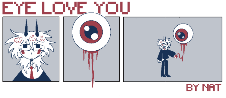 Panel 2: We see a floating eyeball with a red eye and nerves dangling from underneath it.