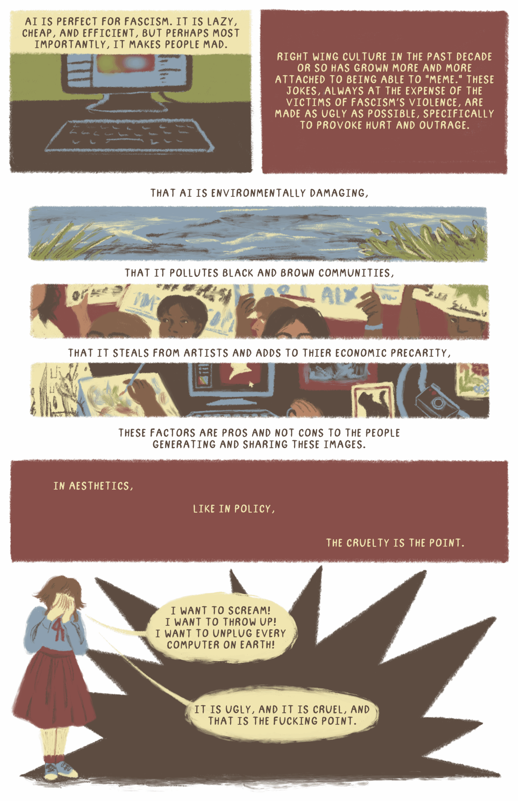 AI is perfect for facism. It is lazy, cheap, and efficient, but perhaps most importantly, it makes people mad.