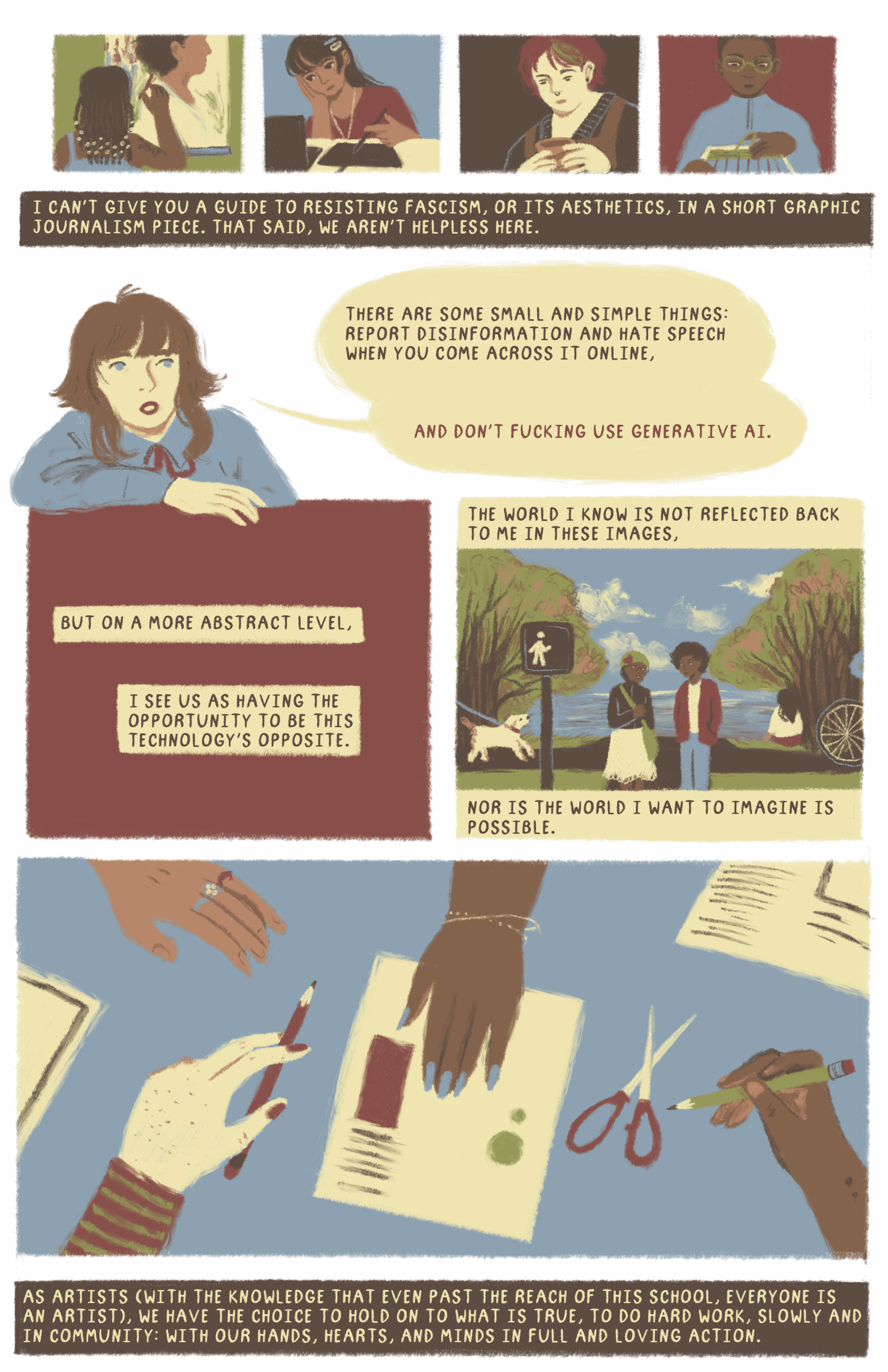 I can’t give you a guide to resisting fascism, or its aesthetics, in a short graphic journalism piece. That said, we aren’t helpless here.
