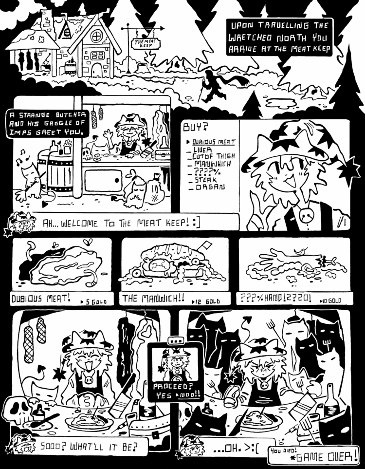 Narration: Upon travelling the wretched north you arrive at “THE MEAT KEEP.”