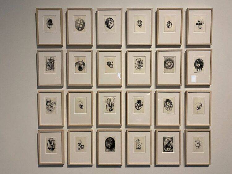 Visually, Ono’s work is black and white. This duality extends itself conceptually: she cuts furniture in half, breaks bowls only to mend them, conceals her body and then gives her clothing away, and makes you look on the other side of everything. She waltzes between these polar extremes, never setting foot in the gray, allergic to the half-hearted. Perhaps what struck me the most was one of the final pieces in the exhibition, “Franklin Summer,” an ongoing collection of drawings that Ono started in 1994. These tiny stipplings of ink on paper reveal a slow, solitary process, one that I hadn’t expected of her.