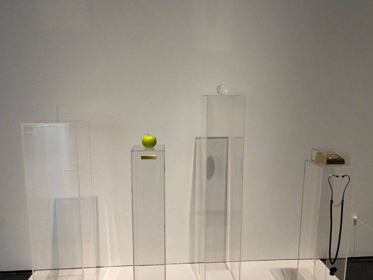 The exhibition is well balanced between interactive and non-interactive works. One can sit on a bean bag and listen to Ono’s musical projects, or keep walking through her experimentation with readymades. A green apple sat atop a glass pedestal, and its story was just as sweet. Shortly before John Lennon and Yoko Ono met, the former visited the gallery in which “Unfinished Paintings & Objects” was taking place in London in 1966, and bit into “Apple,” thinking it was just a fruit. They met shortly after; Ono said, “I met a guy who plays the same game I played.” And thus, their partnership and imagination began.