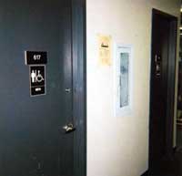 The Sixth Floor Bathrooms of The Champlain Building...Certainly the height of luxury and splendor in the SAIC community... Where else can you have an entire stall to yourself, and a relatively clean one at that... And, last but not least, I am pleased to say that the women's bathroom is also a step above the rest of the school in its charm and cleanliness. |