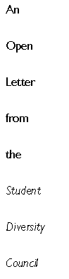 We hope to engage the student body in a productive discussion about the meaning of living with human differences as well as provide the opportunity for artists whose work deals with these values to showcase it to a wider audience. Though we are formally linked with the Office of Multicultural Affairs, we are not identical to them and so we take full responsibility for our decisions. It is our firm belief that fostering an environment in which a diversity of the nature that we have described can exist is not only good in and of itself, but is also in our best interests as creative individuals.