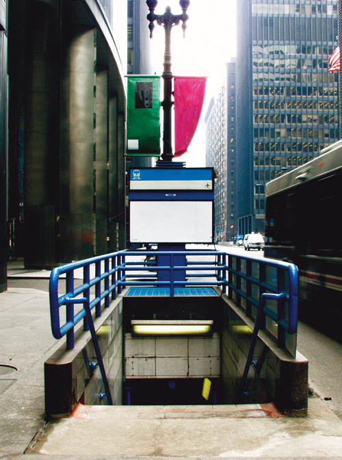 By transforming signage into shapes and colors, the chaotic world of Chicago’s Loop becomes a little easier on the eye. We are left with the feeling of emptiness, which recalls an experience of being lost in an unfamiliar environment. Even when the environment is actually quite familiar. It is an eerily comfortable position to be in, and will lead you to question your own place in public space.