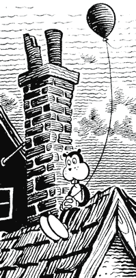 has that peculiar un-definable resonance that tells me that there is something hidden behind the ideas expressed therein. If that invisible glow is there, I continue. If not, I cross it out. I continue until thestory ends; then I draw it up and, if I'm lucky, discover the meaning of the story after it is completed. When the meaning becomes clear before it is drawn, the process of finishing it can be very tedious. Fancy image-text concepts? My, yes. The Frank stories are intended to be beyond specific time, place and culture. That's why there are no spoken words.